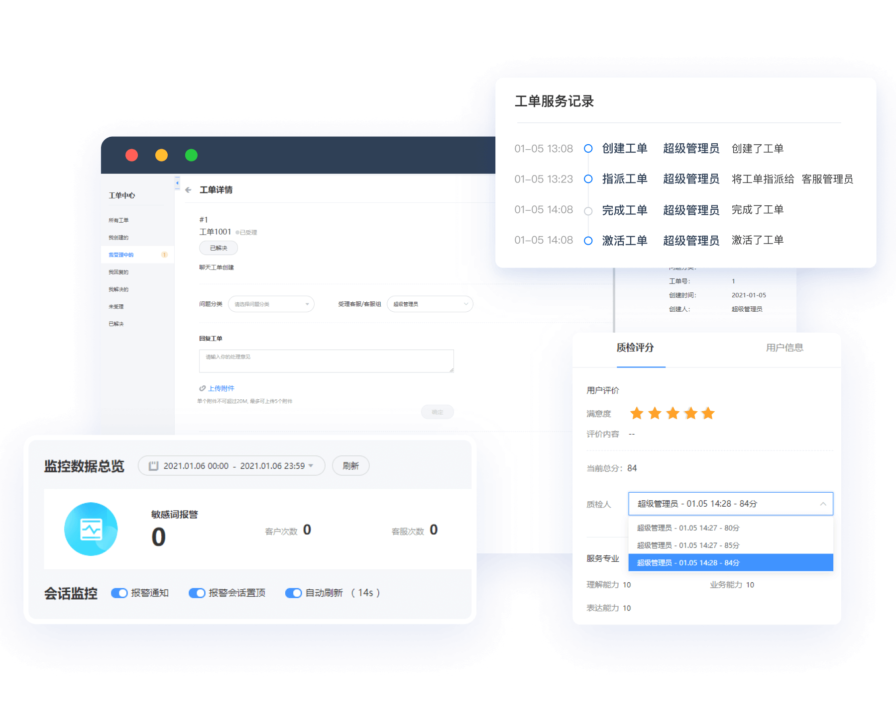 精细质检会话内容,利用NLP语义理解能力,智能监控敏感词等信息,第一时间预警处理